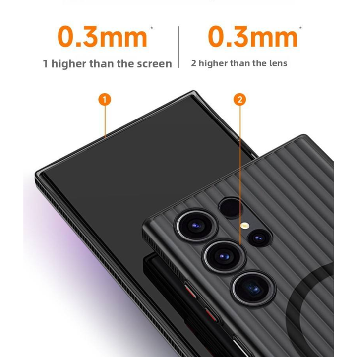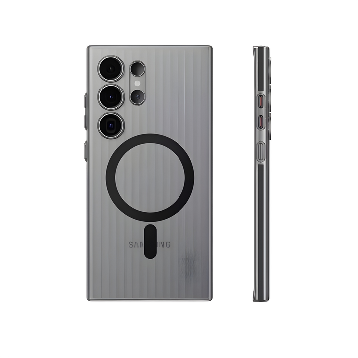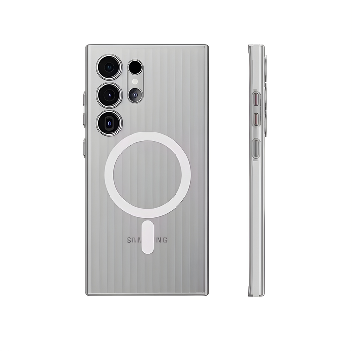 Give your Samsung flagship the protection it deserves with the CaseBase Ultra-Thin Semi-Transparent Corrugated Case, designed for S24 Ultra and S25 Ultra. This case combines minimal bulk with a premium corrugated grip texture and a clean semi-transparent finish. Built-in magnetic alignment makes it compatible with MagSafe accessories, giving you convenience without compromising on protection.